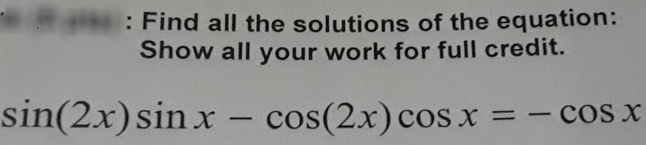 : Find all the solutions of the equation: Show all your work for f...