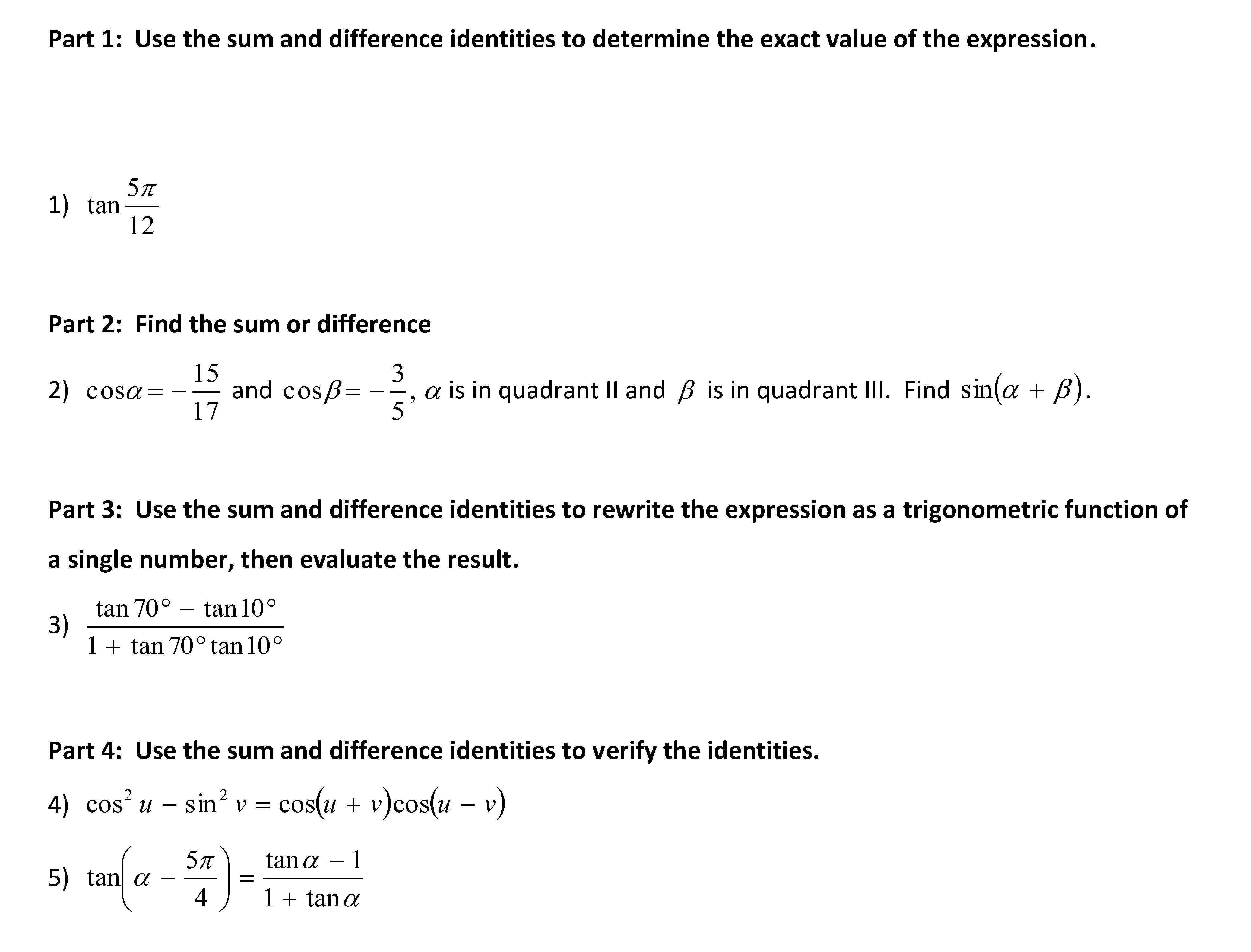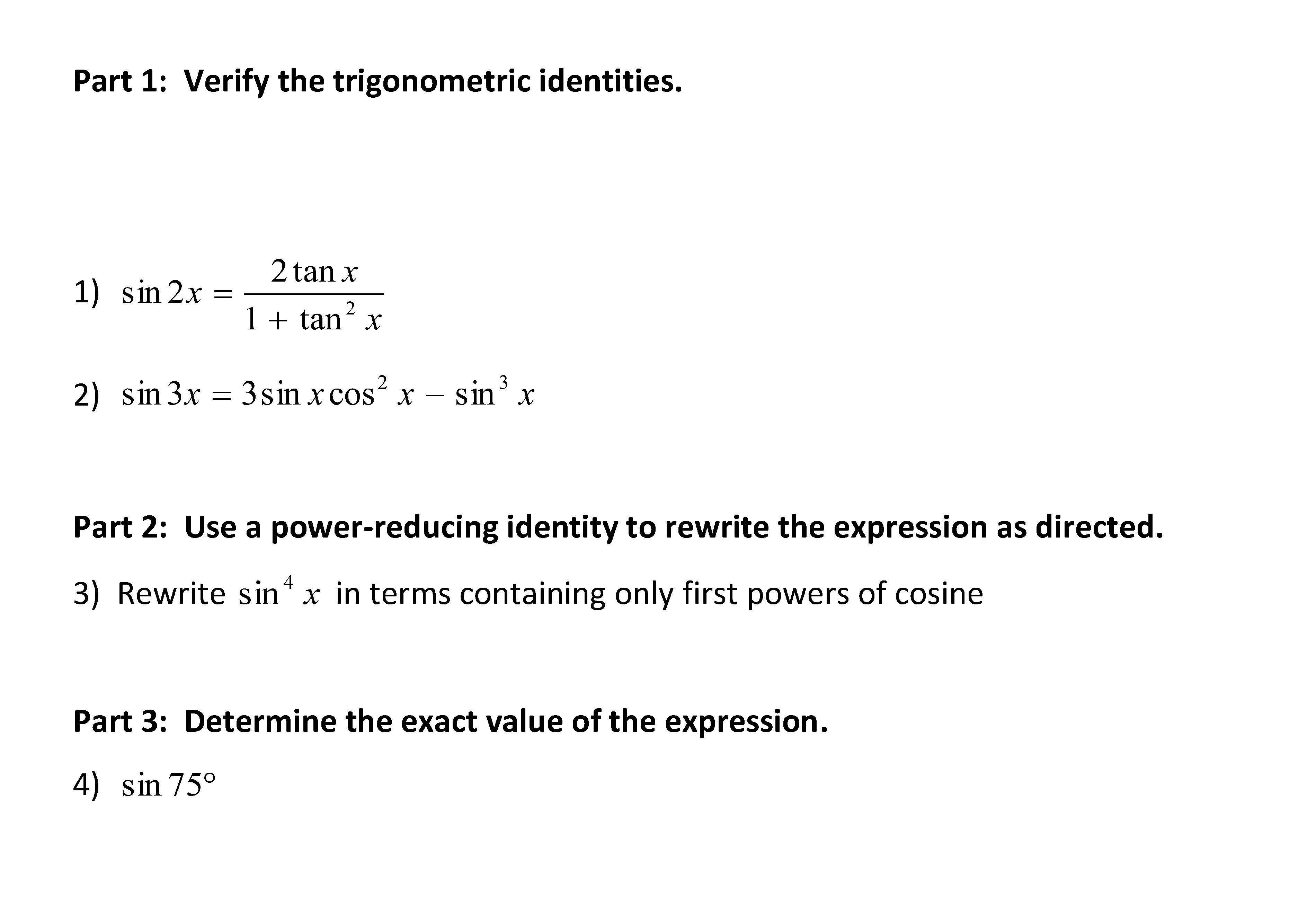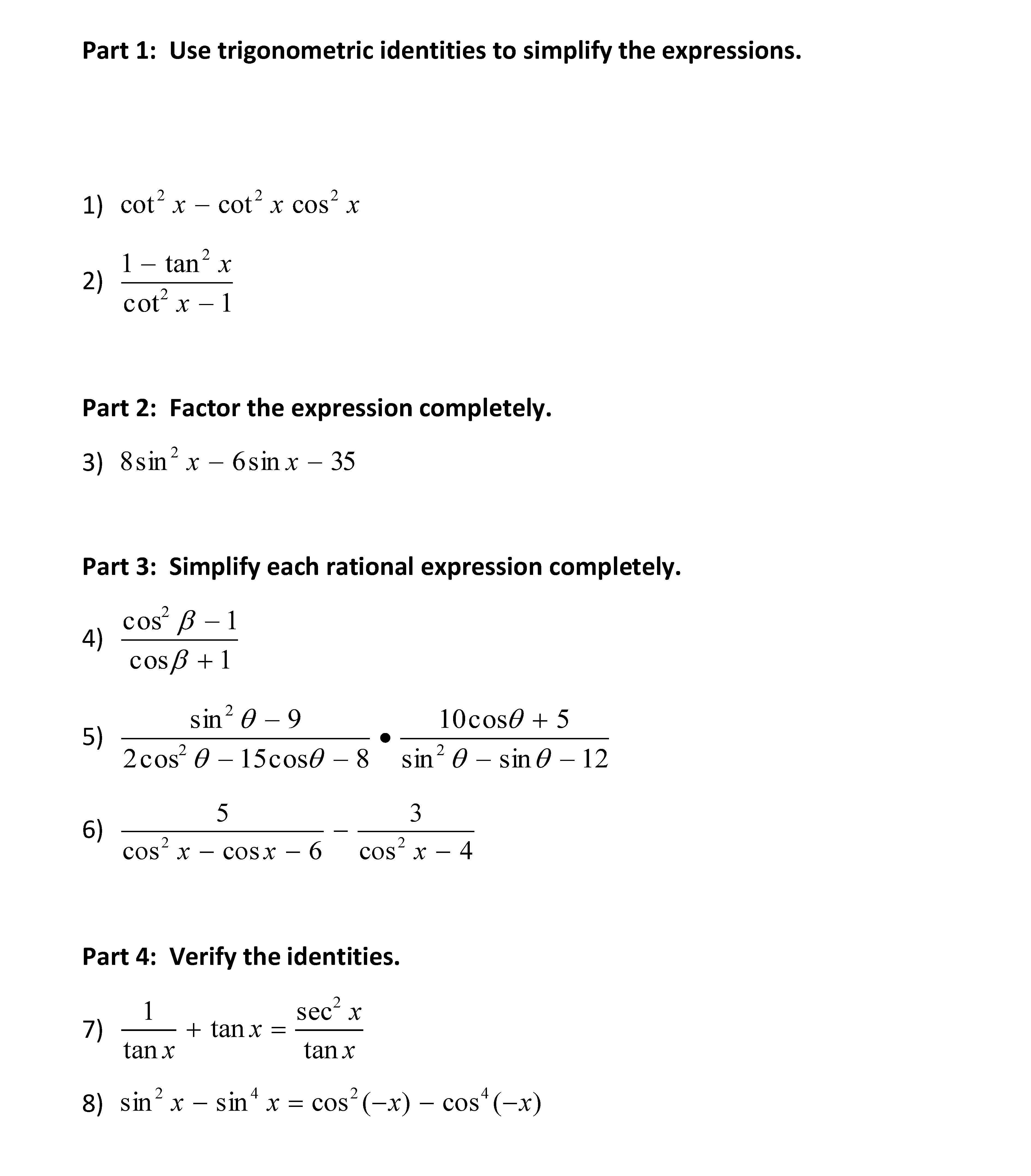 Part 1: Use trigonometric identities to simplify the expressions. ...
