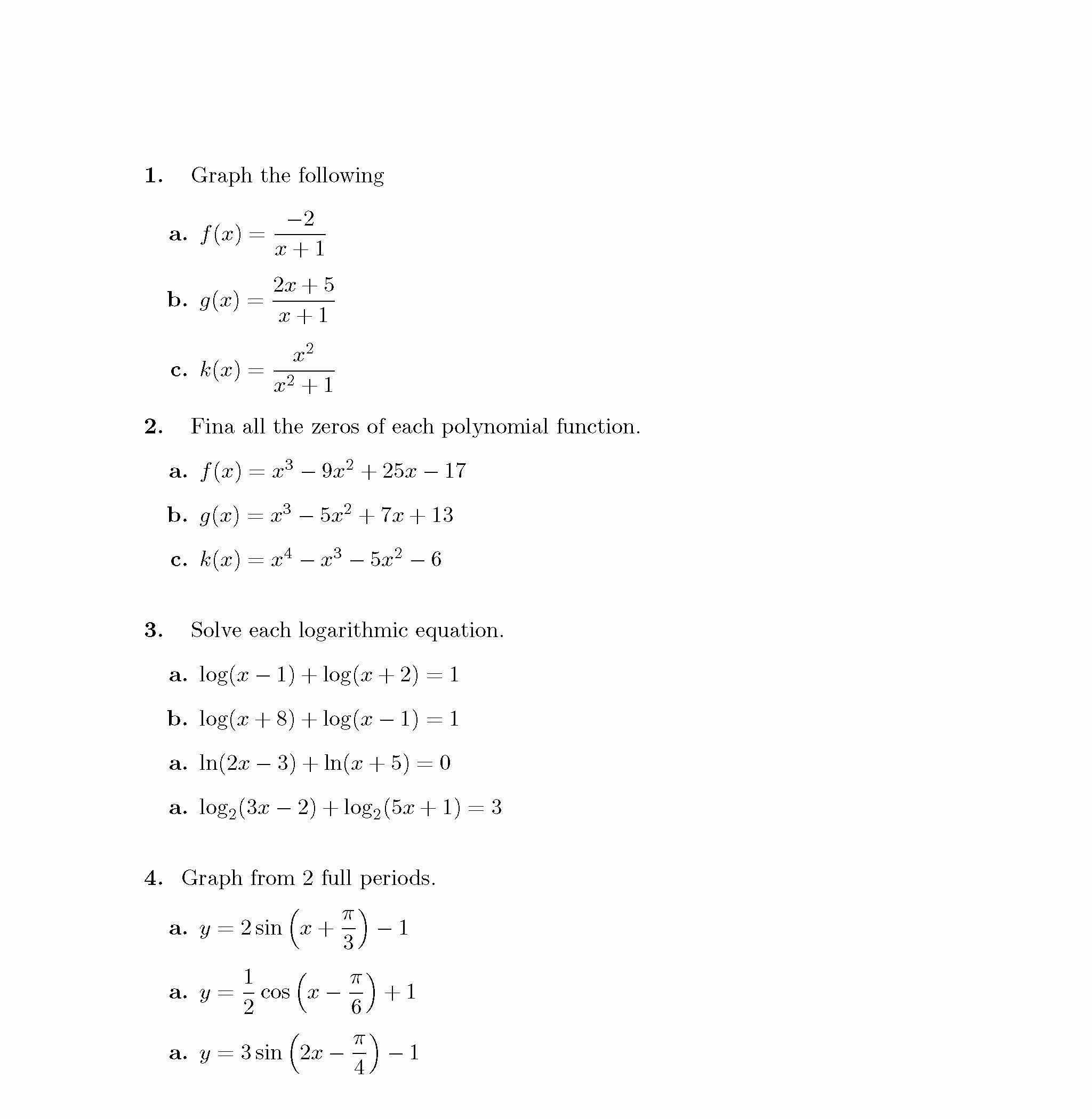 1. Graph the following -2 a. f(x) r+1 2.+5 b. g(x) x+1 2 c....
