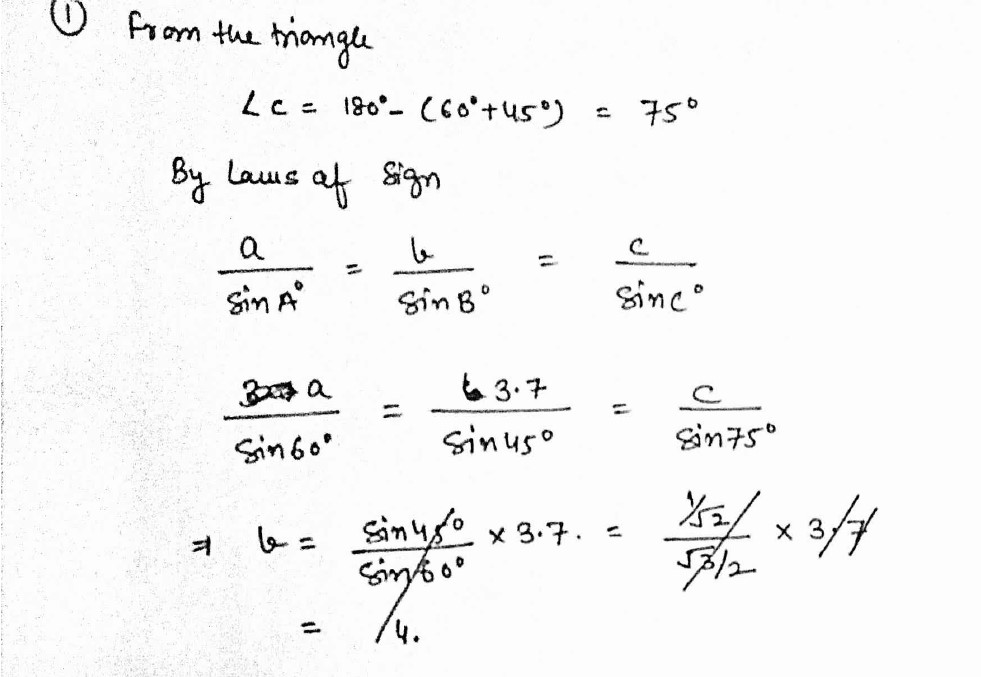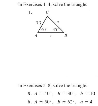 1. C 3.7 a 60° 45° A C B In Exercises 5-8, solve the...