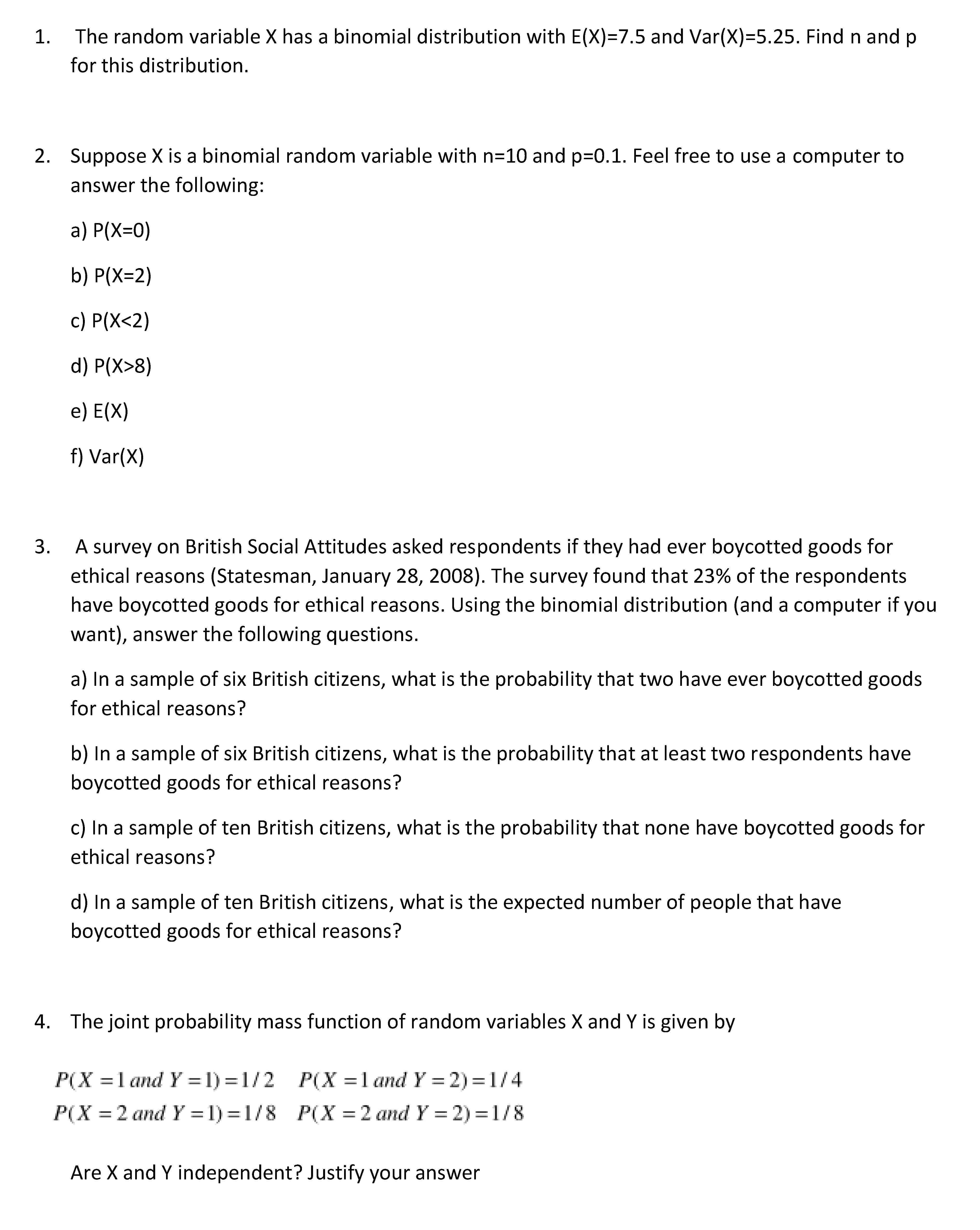 1. The random variable X has a binomial distribution with E(X)=7.5 ...