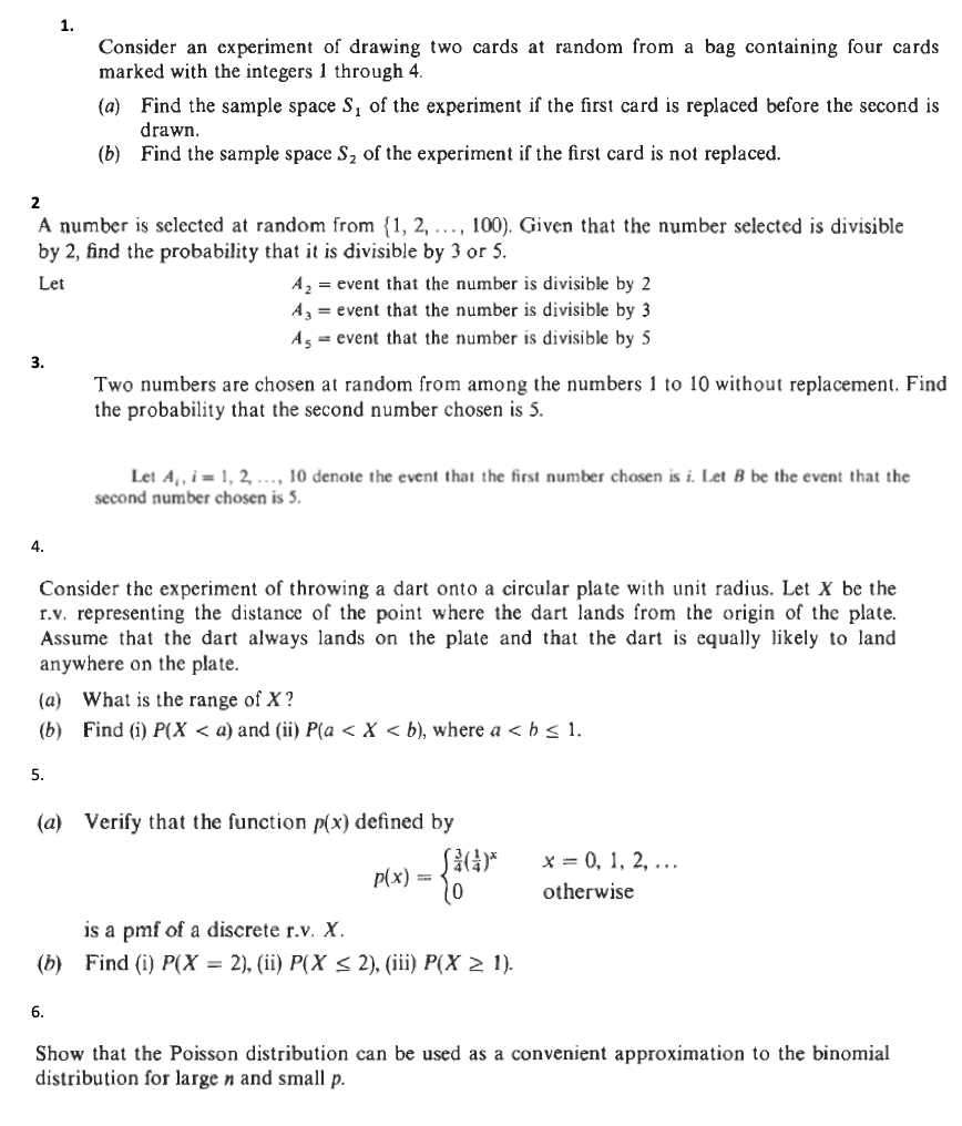 1. Consider an experiment of drawing two cards at random from a ba...
