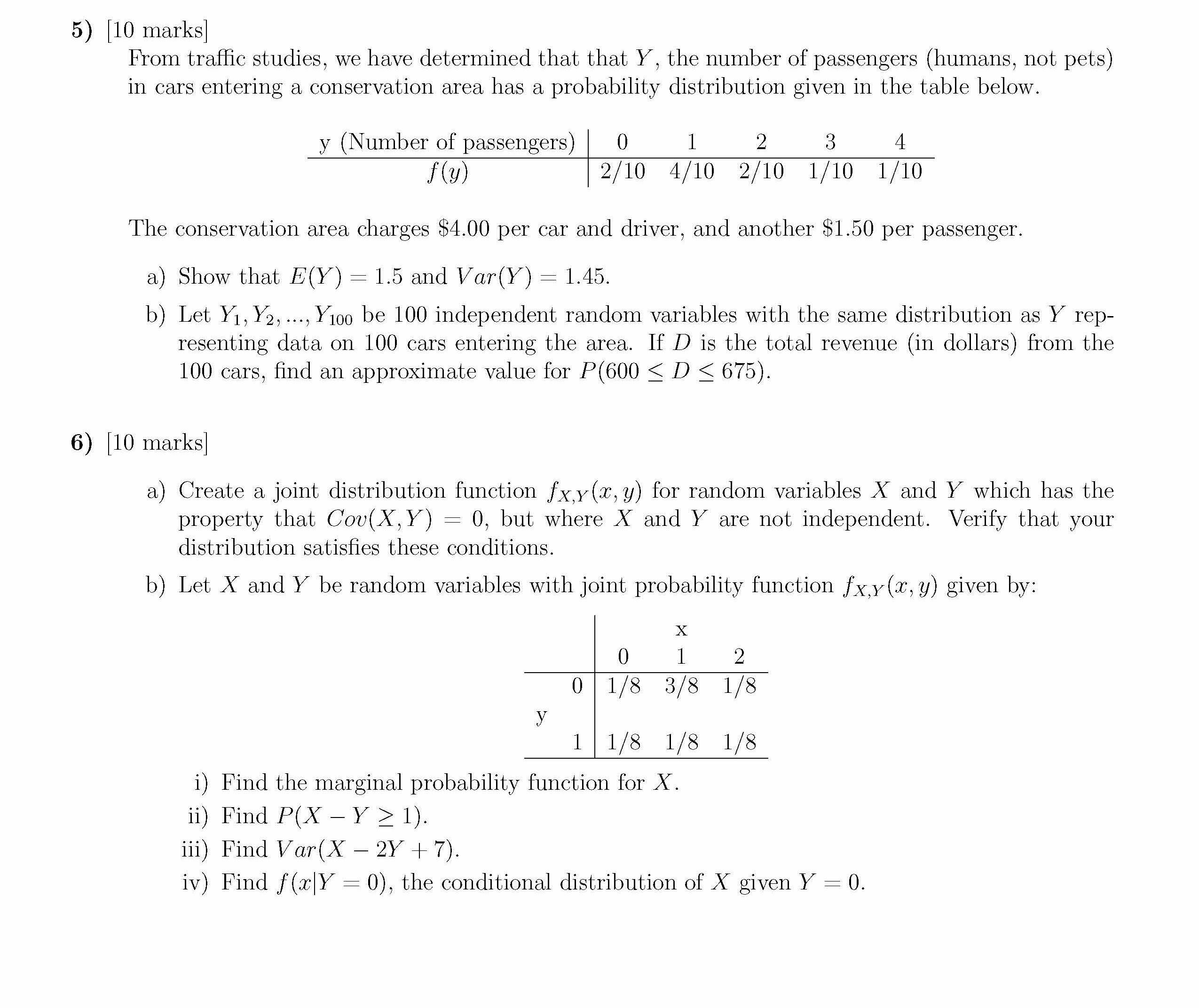 5) [10 marks] From traffic studies, we have determined that that Y...