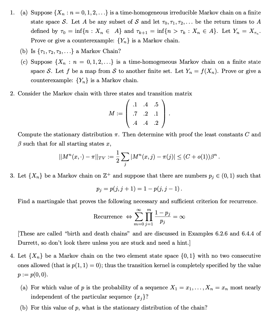 1. (a) Suppose {Xn :n = 0,1,2, } is a time-homogeneous irreducibl...