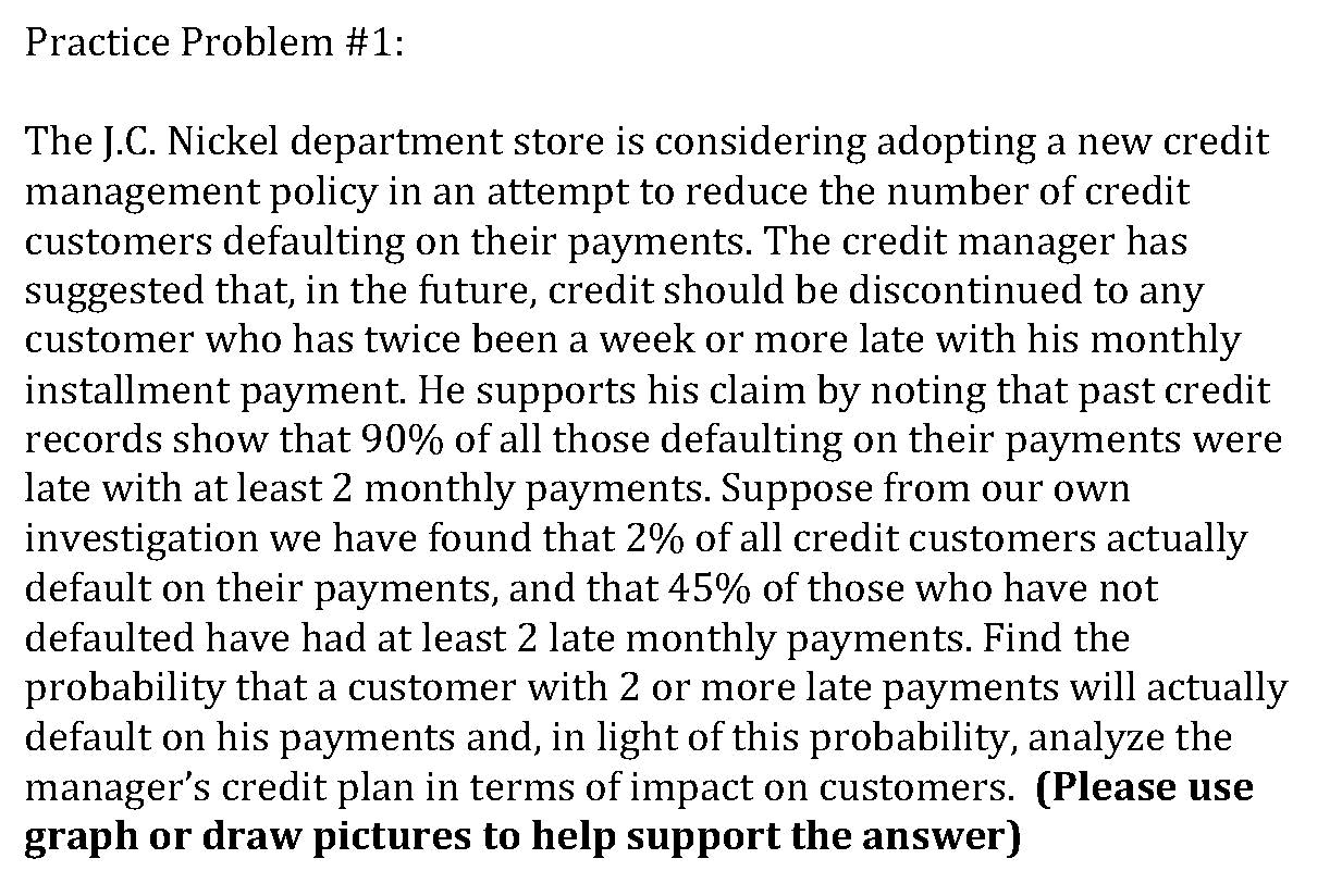 Practice Problem #1: The J.C. Nickel department store is c...