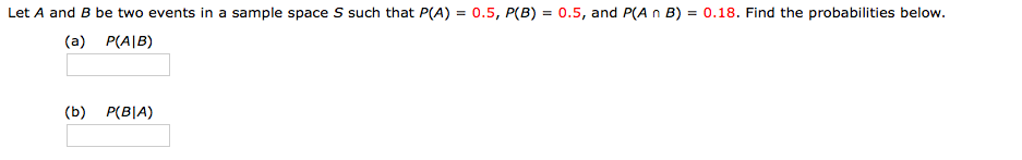 Let A and B be two events in a sample space S such that P(A) = 0.5,...