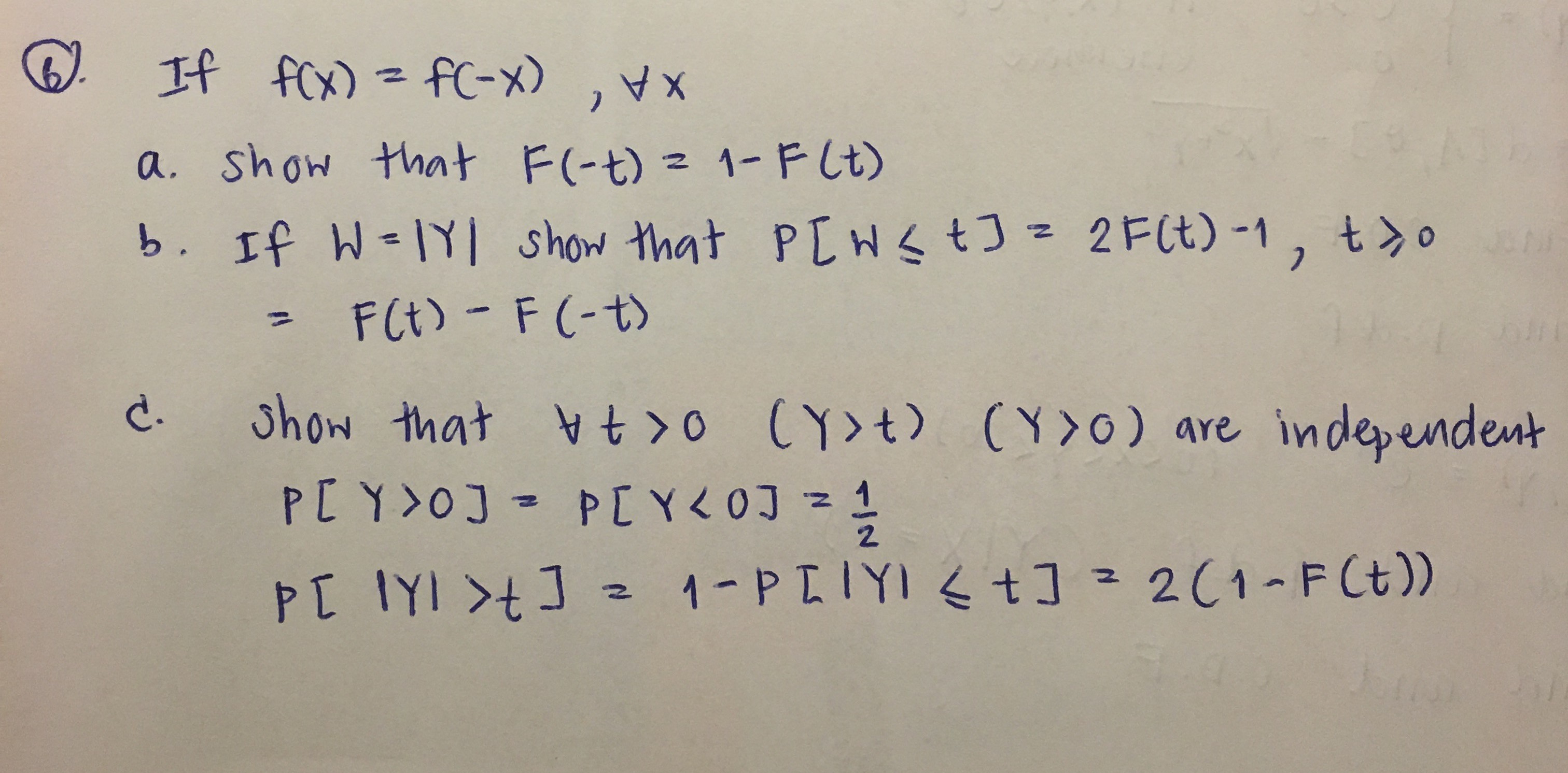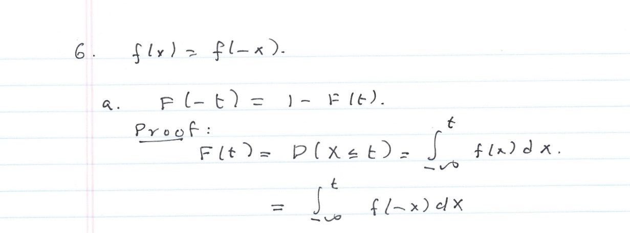 6 . If f(x) = FC-x) , xx a. show that F(-t) = 1-F(t) b. If W=1Y...