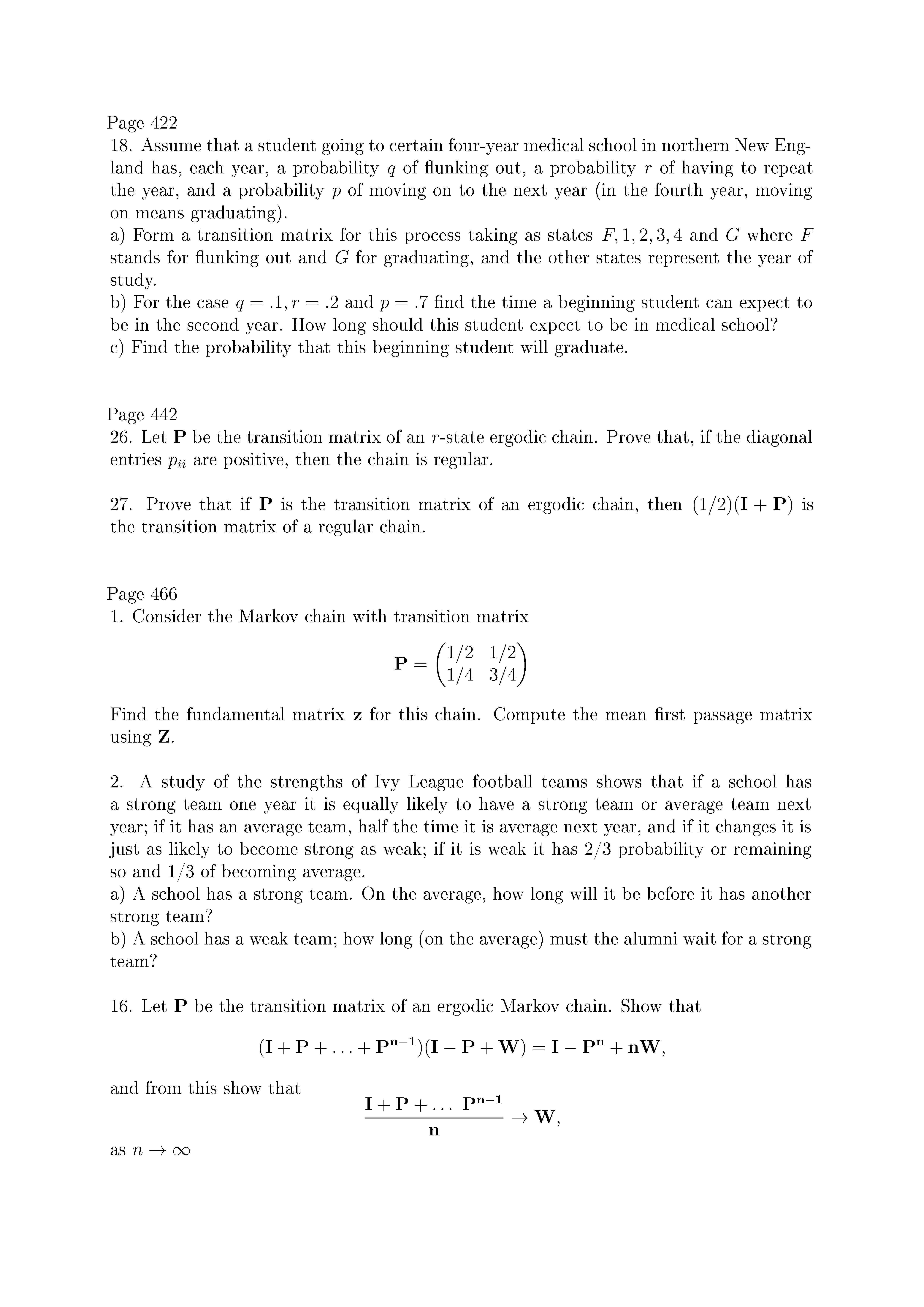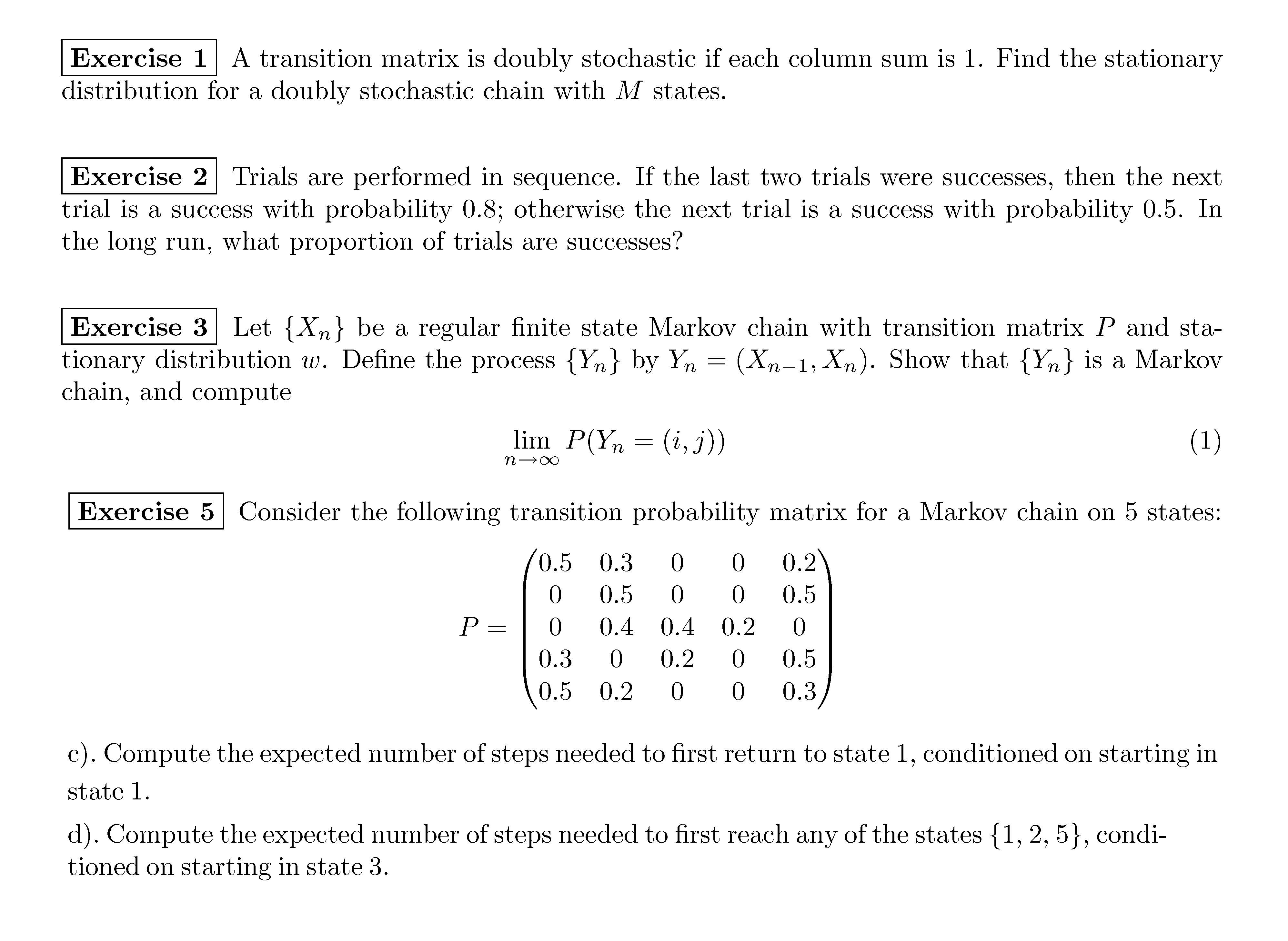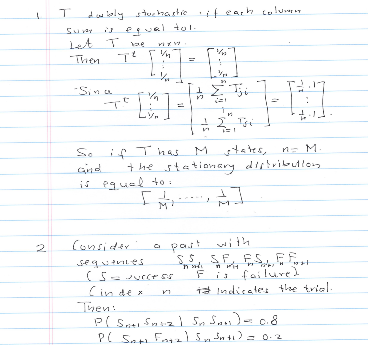 Exercise 1 A transition matrix is doubly stochastic if each column...