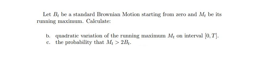 Let Bt be a standard Brownian Motion starting from zero and Mt be i...