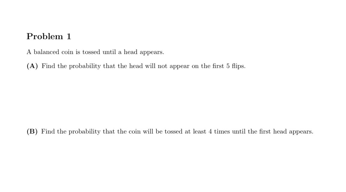 . Problem 1 A balanced coin is tossed until a head appears. (A) F...