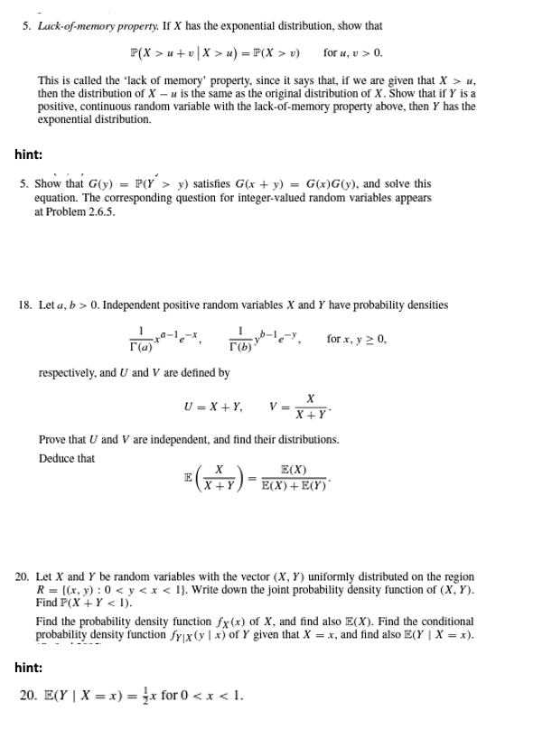 5. Lack-of-memory property. If X has the exponential distribution, ...