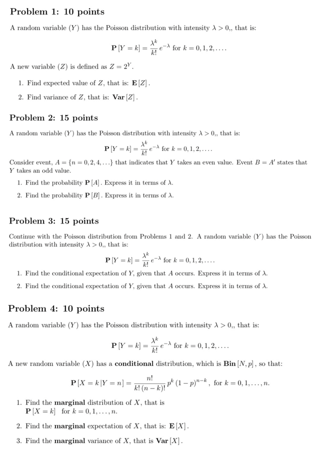 Problem 1: 10 points A random variable (Y) has the Poisson distrib...