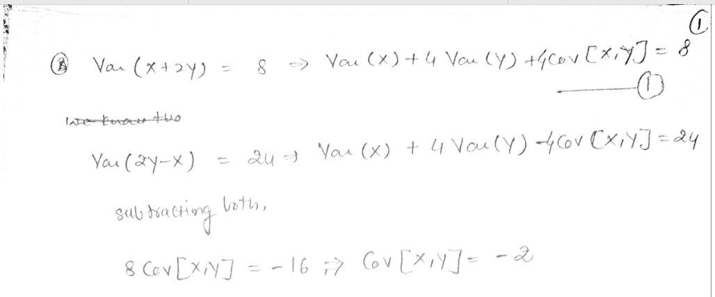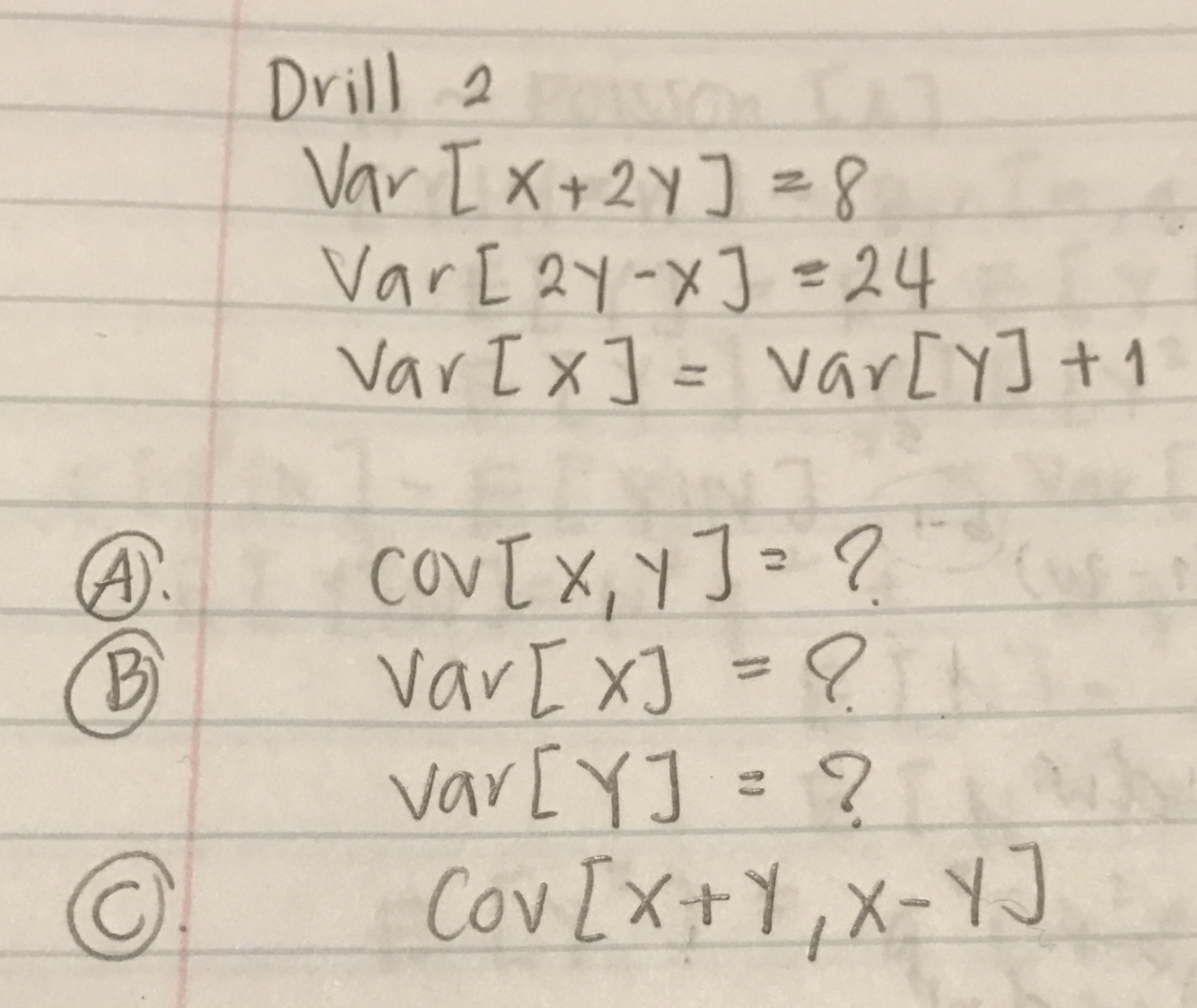 Drill 2 Var [x+2y] =8 Var[2y-x] 24 Var x ] ] = var[y]+1 A) COV...