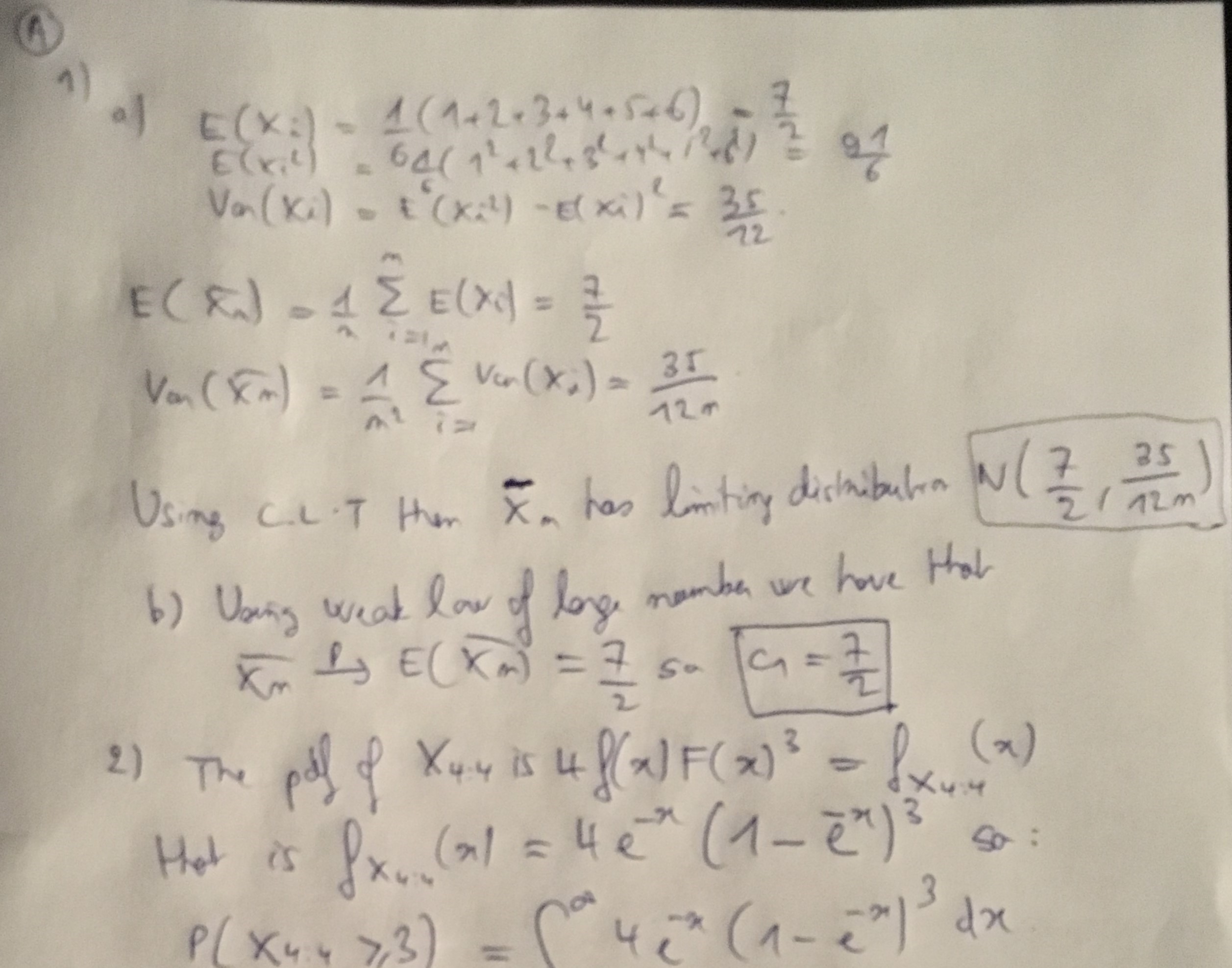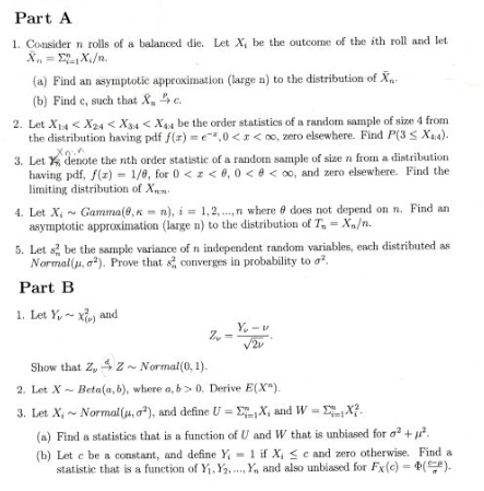 Part A 1. Consider n rolls of a balanced die. Let X, be the outcom...