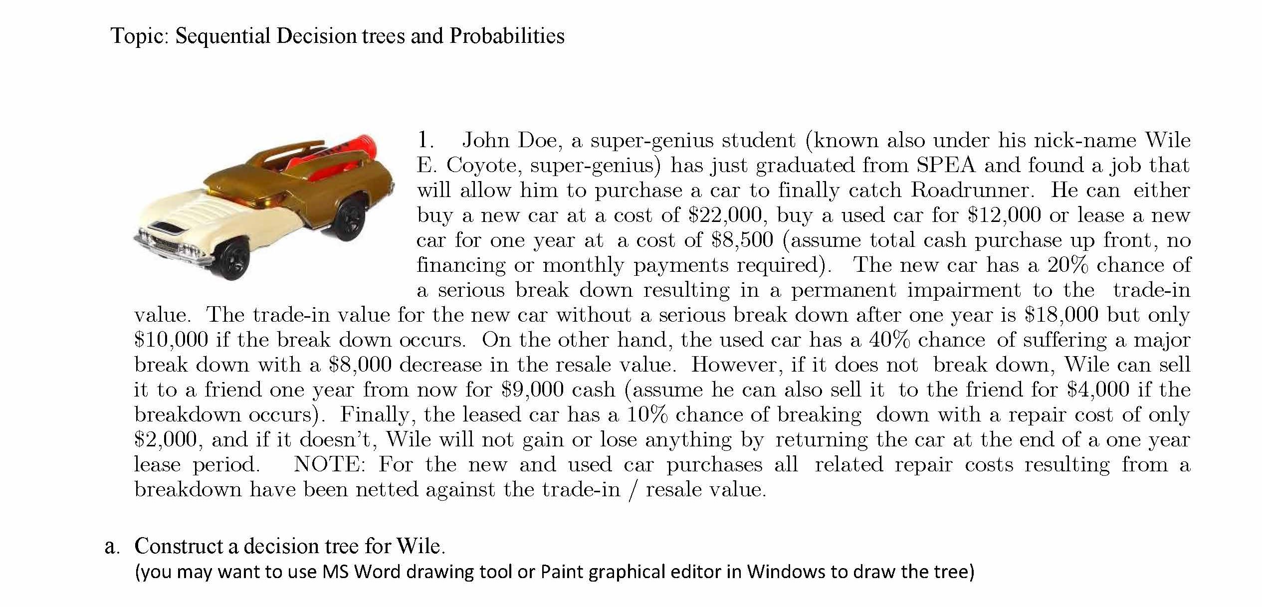 Topic: Sequential Decision trees and Probabilities 17, 11:59pm (Sep...