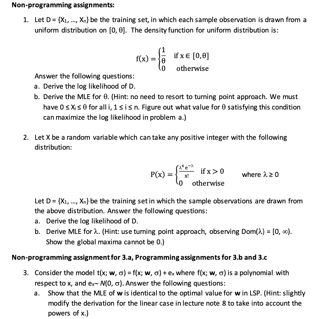 Non-programming assignments: 1. Let D = {X1, Xn} be the training s...