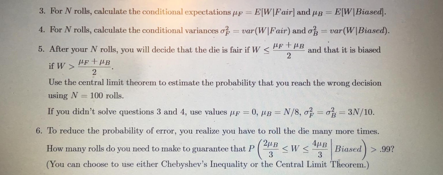 3. For N rolls, calculate the conditional expectations UF = EWFair]...