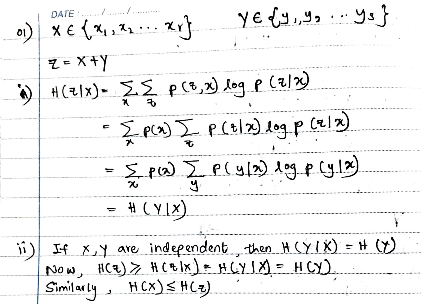 1.) Let X and Y be random variables that take on values x1, x2, …...