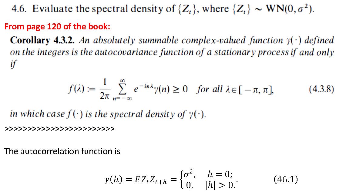 4.6. Evaluate the spectral density of (Z,), where (Z,) ~ WN(0,0²)....