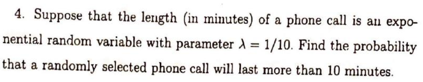 4. Suppose that the length (in minutes) of a phone call is an expo-...