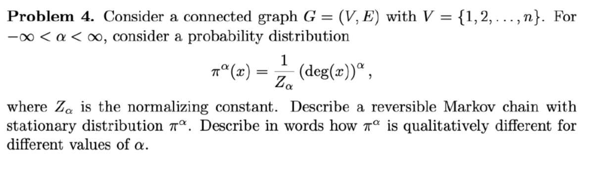 Problem 4. Consider a connected graph G = (V,E) with V = {1,2, ,n}...