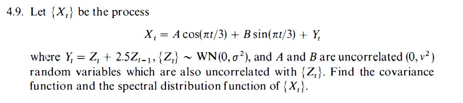 4.9. Let (X,} be the process X, = A cos(t/3) + B sin(zt/3) + Y, w...
