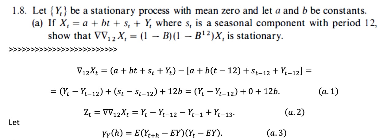 1.8. Let (Y,} be a stationary process with mean zero and let a and...