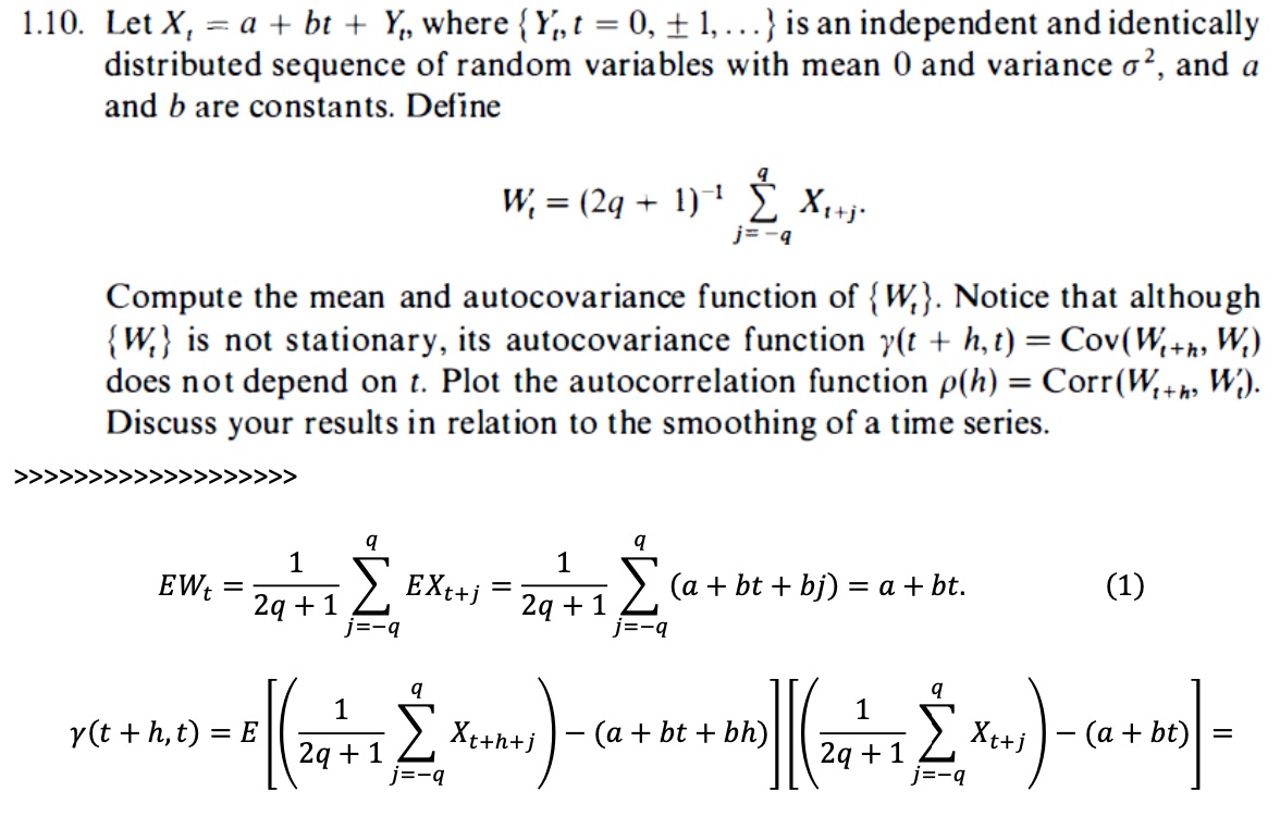 1.10. Let X, = a + bt + Y, where { Y,1 = 0, + 1, } is an independen...