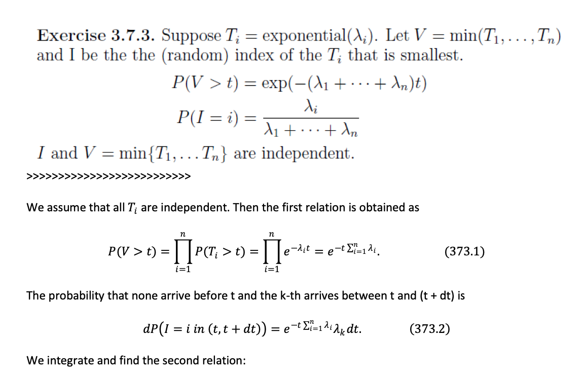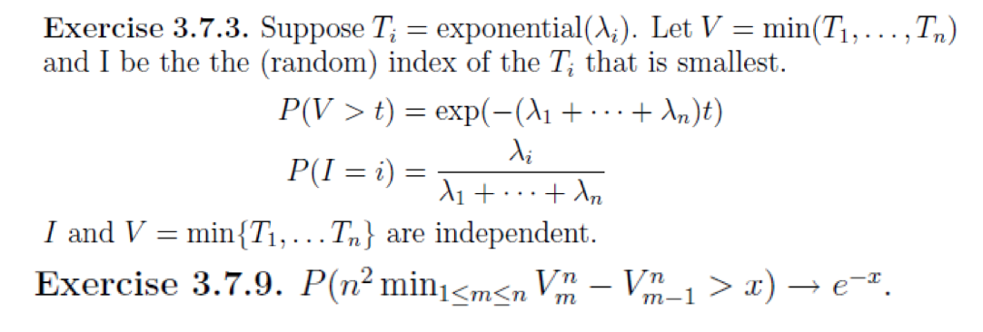 Exercise 3.7.3. Suppose Ti = exponential( (i). Let V = min (T1 , ...