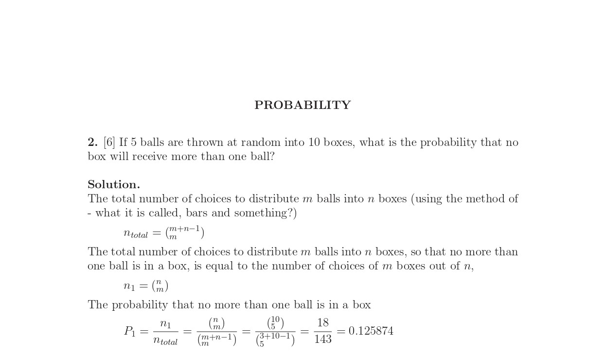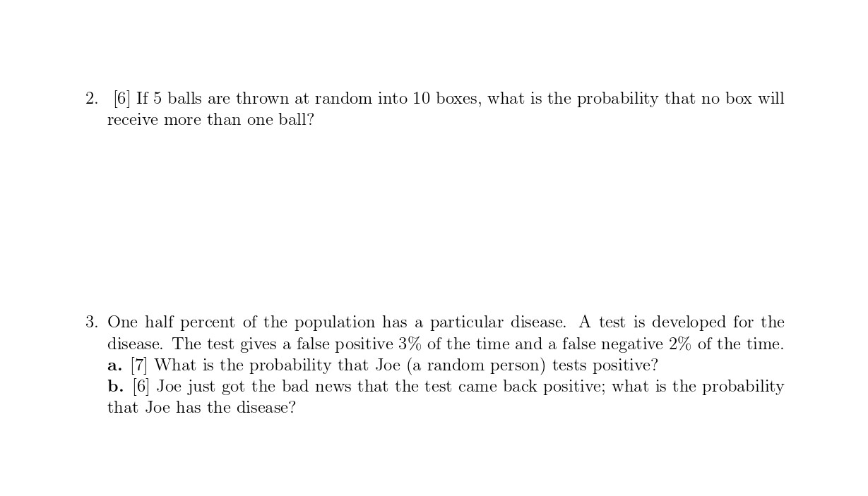 2. [6] If 5 balls are thrown at random into 10 boxes, what is the p...