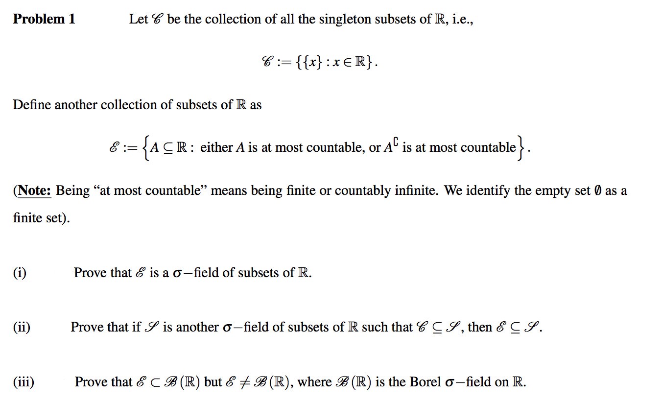 Problem 1 Let C be the collection of all the singleton subsets of ...