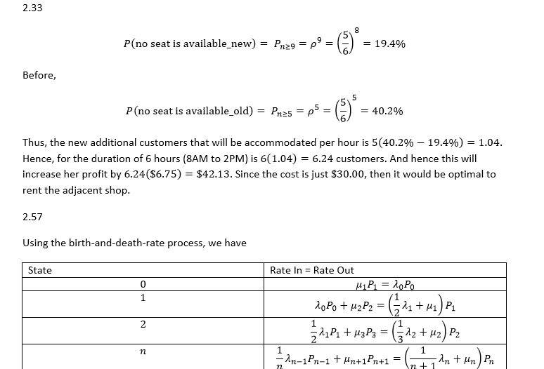 2.33. Under the assumption that customers will not wait if no seat...