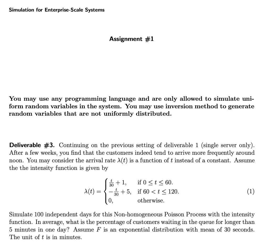 Simulation for Enterprise-Scale Systems Assignment #1 You may use...