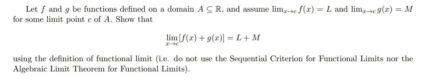 Let f and g be functions defined on a domain A C R, and assume = L...