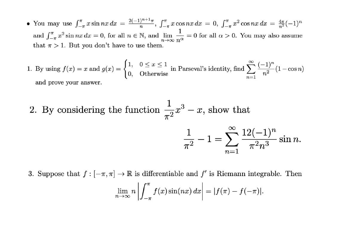 You may use ST x sin nr dx = dr,sx(1) = and P x2 sin na dx = 0, fo...