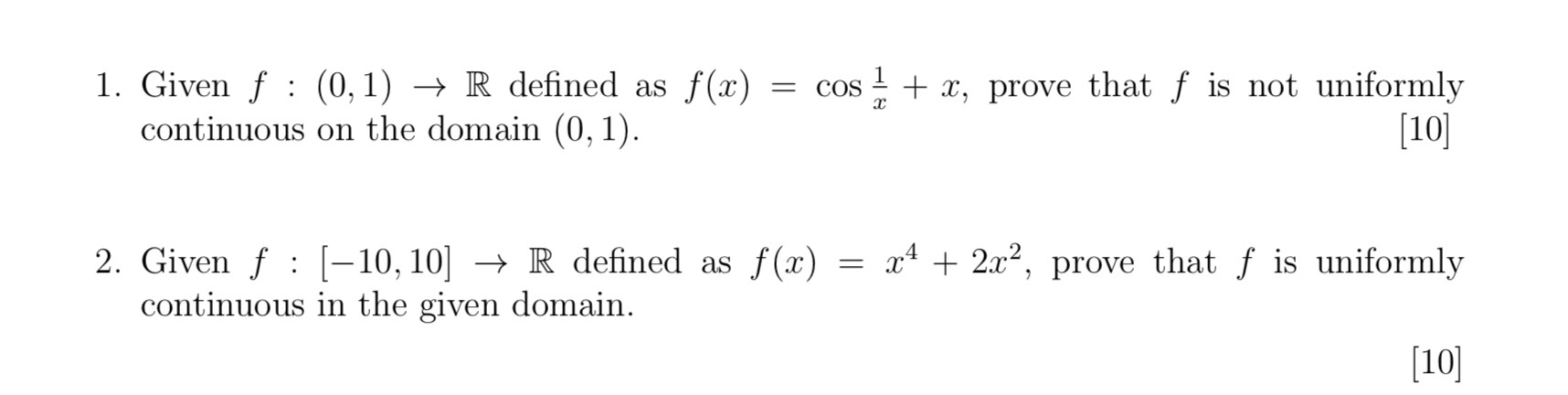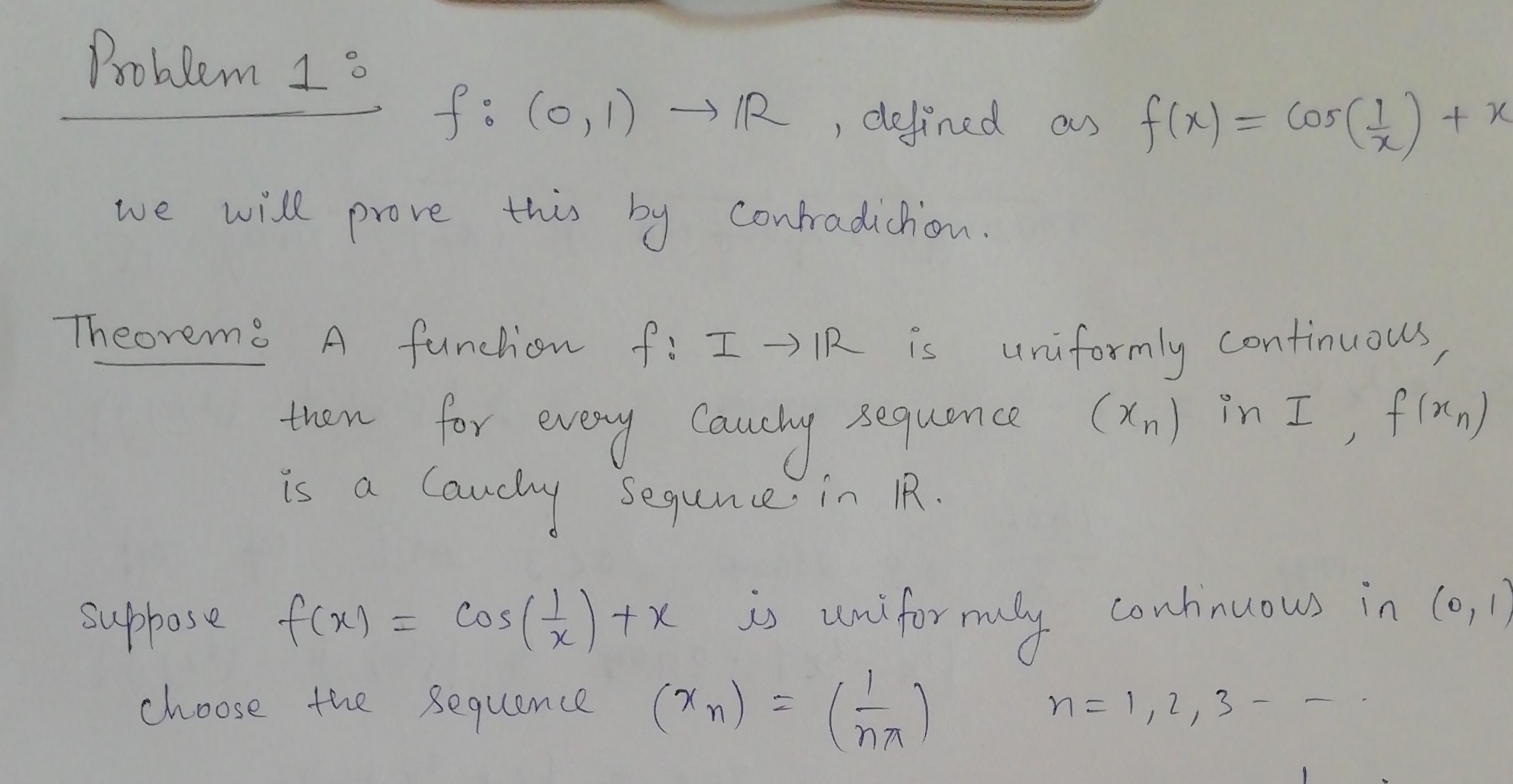 1. Given f : (0,1) R defined as f(x) = COS + prove that f is not u...