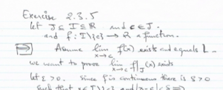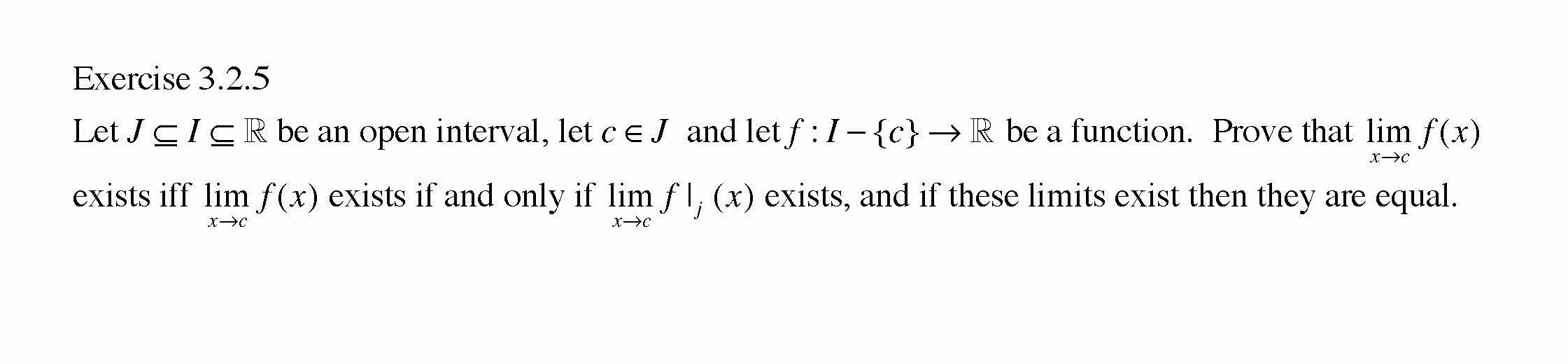 Exercise 3.2.5 LetJglgR be an open interval, letce J and let f:l-{...