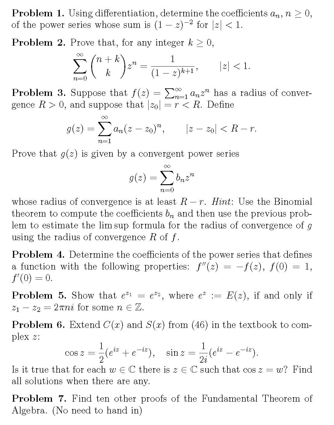 Problem 1. Using differentiation, determine the coefficients an, n ...