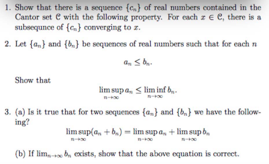 1. Show that there is a sequence {Cn} of real numbers contained in...