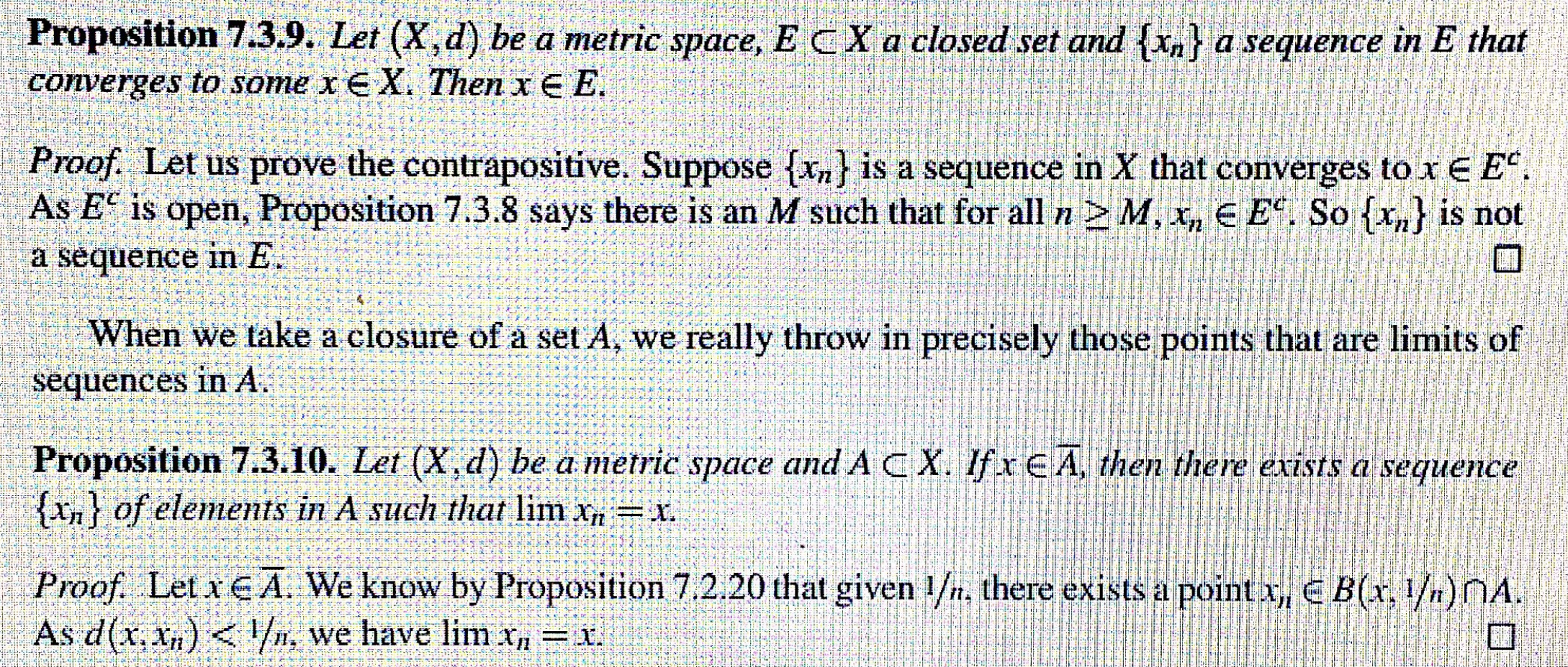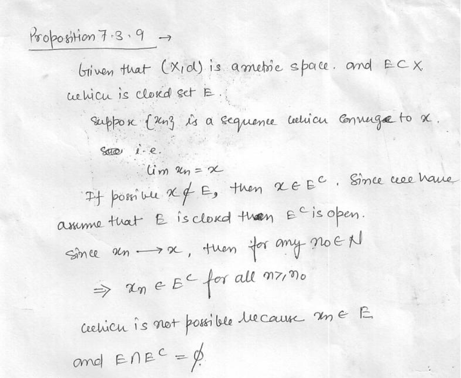 Proposition 7.3.9. Let (X, d) be a metric space, E CX a closed set...