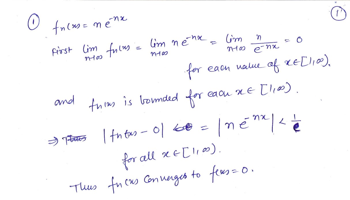 #1 Prove that fn(x)=ne-nx converges uniformly to f(x)=0 on [1,00) ...