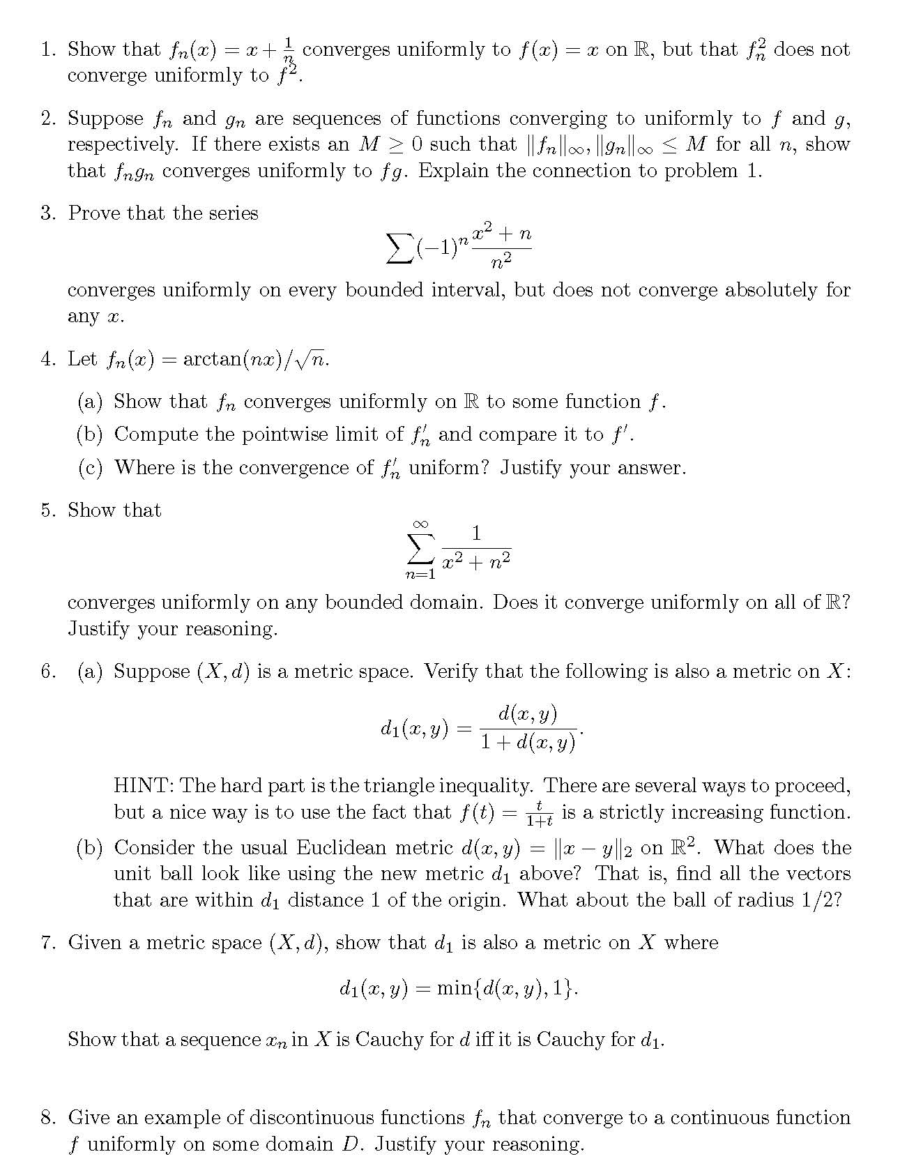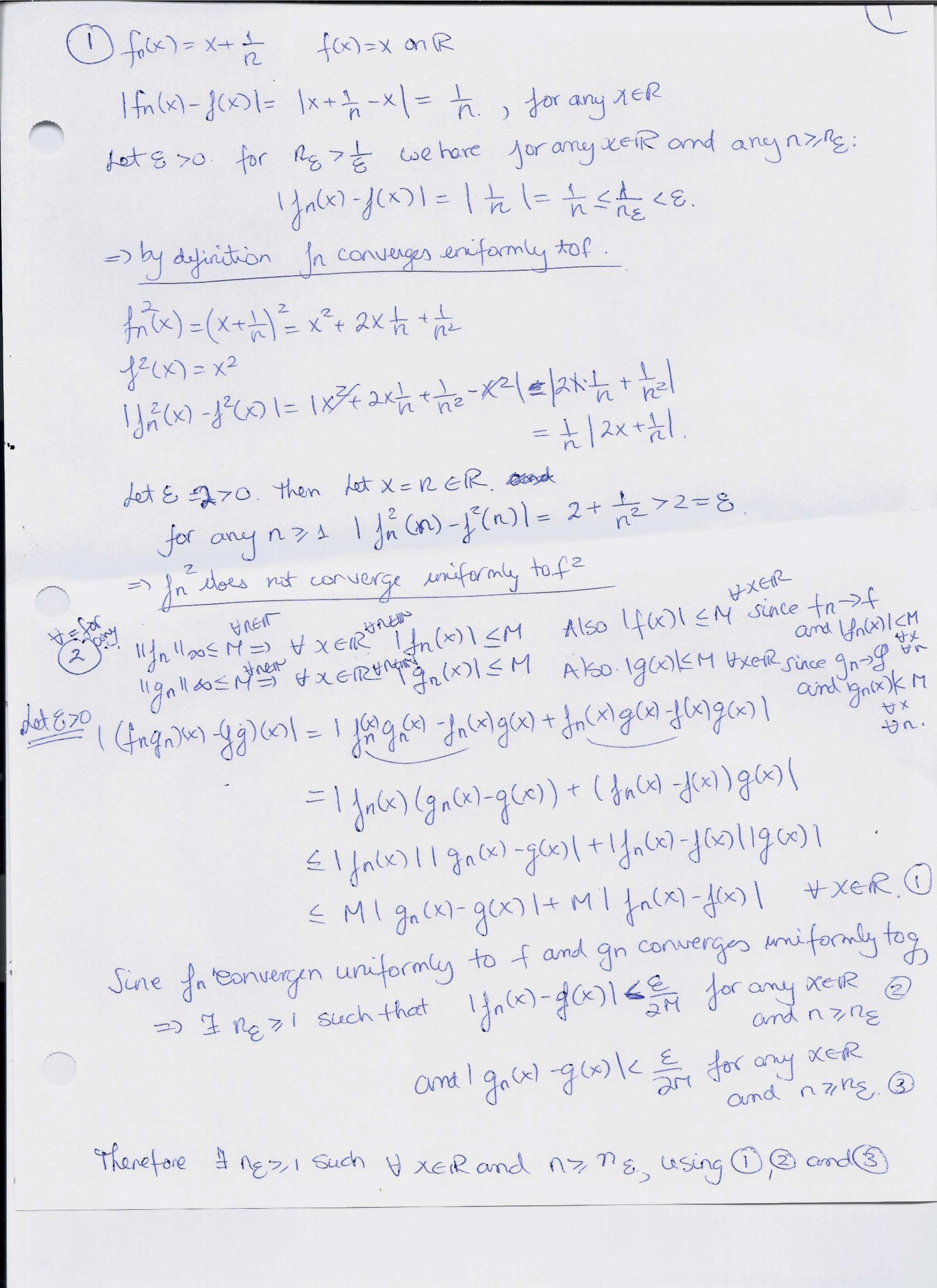 1. Show that fn(x) = x+ 1 n converges uniformly to f(x) = x on R, ...