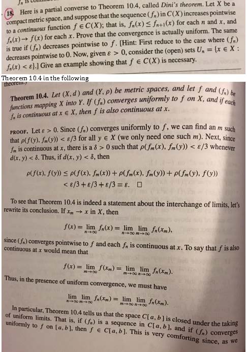 Here is a partial converse to Theorem 10.4, called Dini's theorem. ...