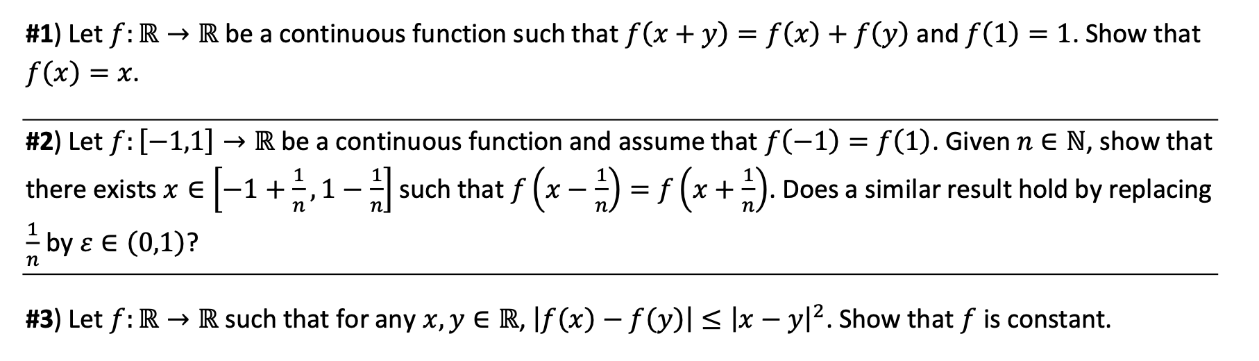 #1) Let f: R R be a continuous function such that f(x f(x) + f(y) a...