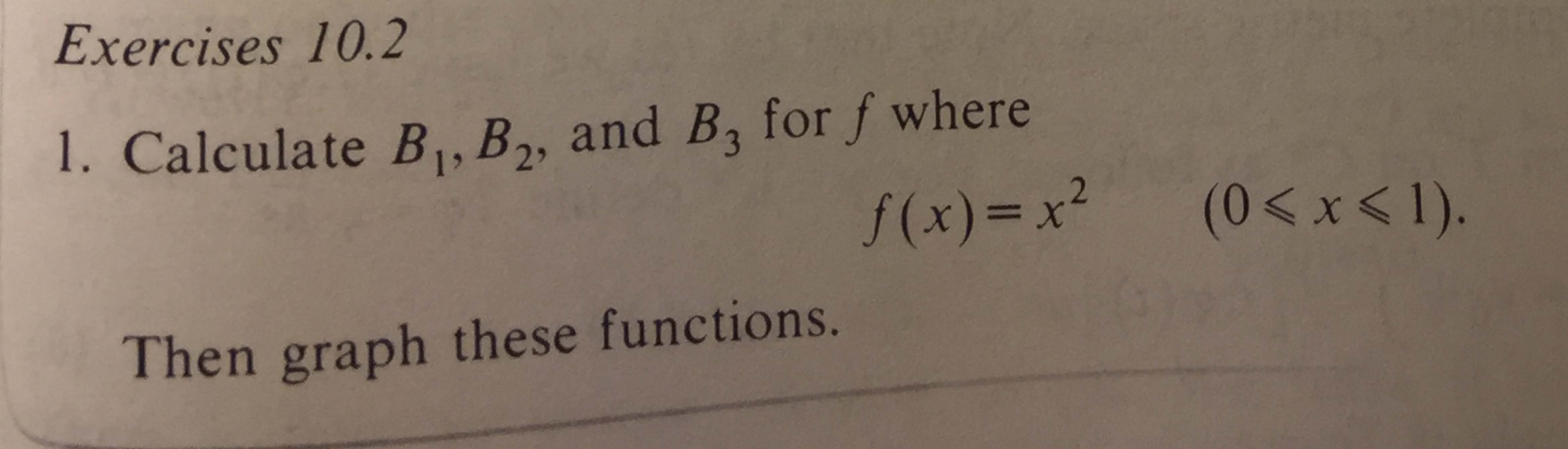 Exercises 10.2 1. Calculate B1, B, and B3 for f where f(x) = x2 ...