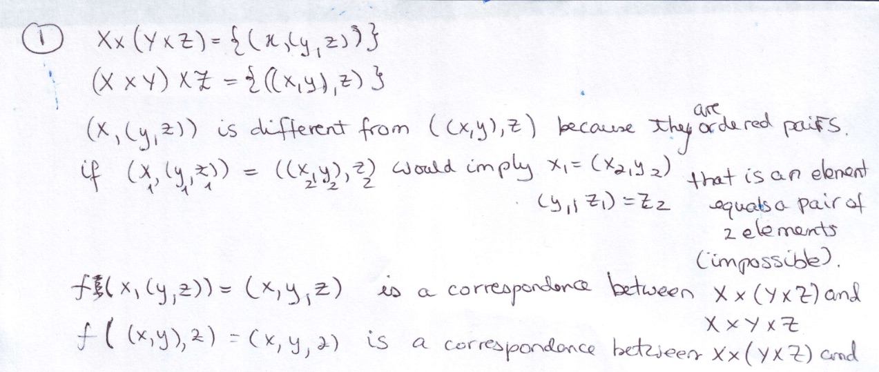 Show that in general the sets X X ( YxZ) and (X X Y)XZ are differe...