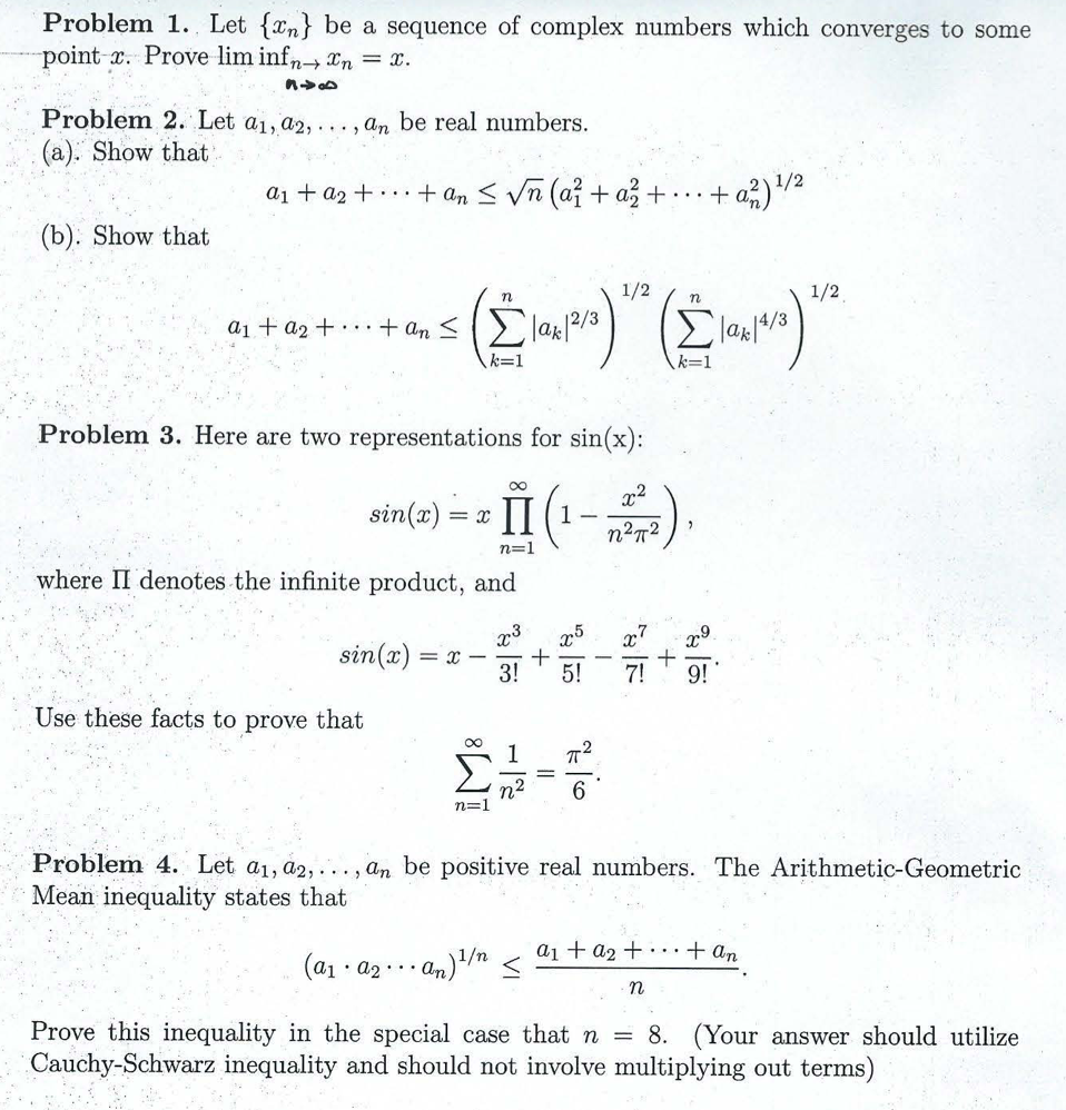 Problem 1. Let {Xn} be a sequence of complex numbers which converge...