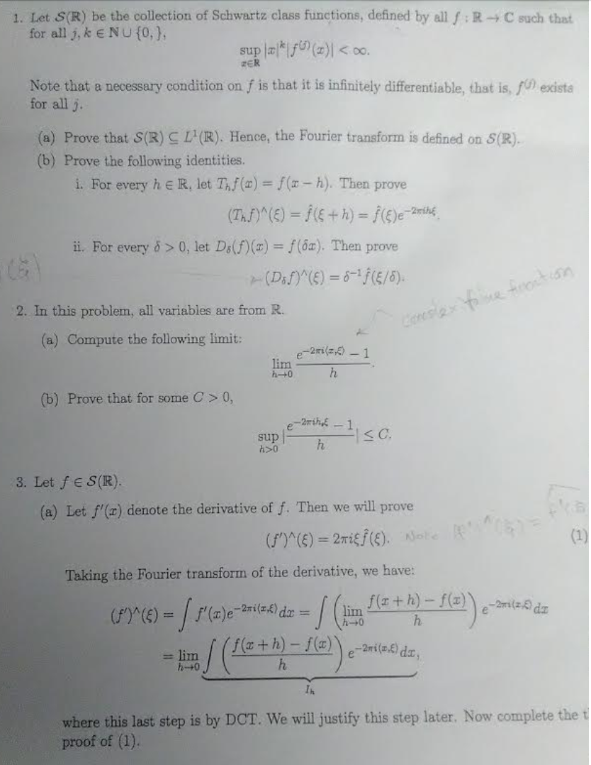 1. Let S(R) be the collection of Schwartz class functions, defined...
