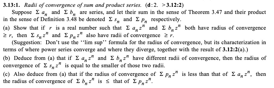 3.13:1. Radii of convergence of sum and product series. (d:2. 3.12:...