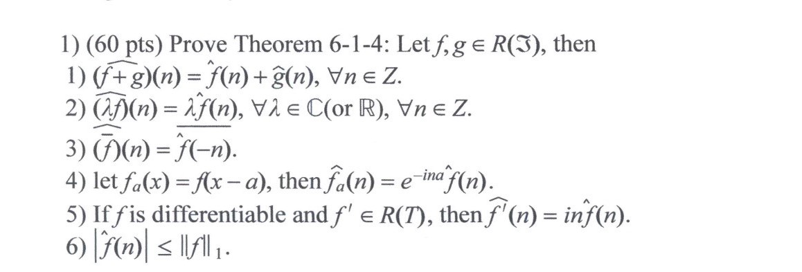 1) (60 pts) Prove Theorem 6-1-4: Let f,g e R(3), then 1) = Z. 2) ...
